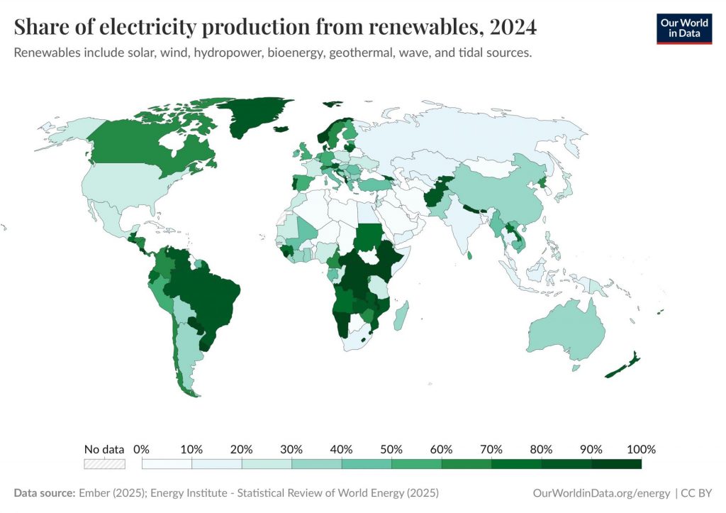 Still, progress remains uneven. Emerging economies — especially in Africa, South Asia, and Latin America — hold vast solar and wind potential but struggle with financing, transmission capacity, and institutional stability. The Atlantic Council (2025)[14] notes that without stronger global partnerships and investment frameworks, much of this potential will remain untapped.